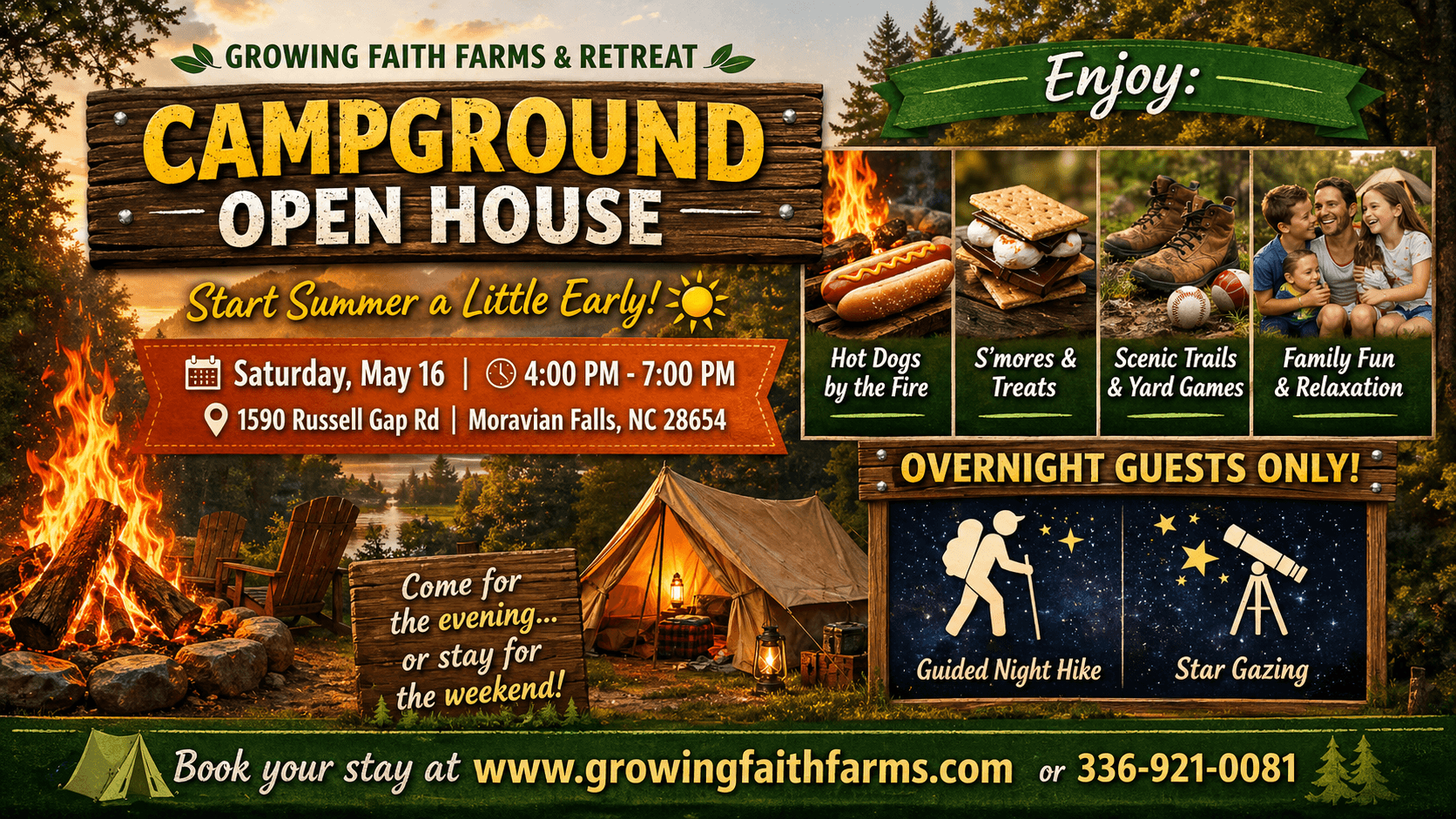 Enjoy: Hot Dogs by the Fire S’mores & Treats Scenic Trails & Yard Games Family Fun & Relaxation Overnight Guests Only! Guided Night Hike Star Gazing Come for the evening... or stay for the weekend!